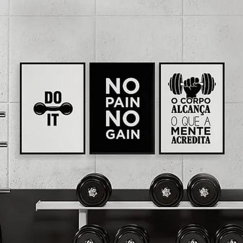 Kit 3 quadros academia do it 24x18cm Moldura: madeira preta