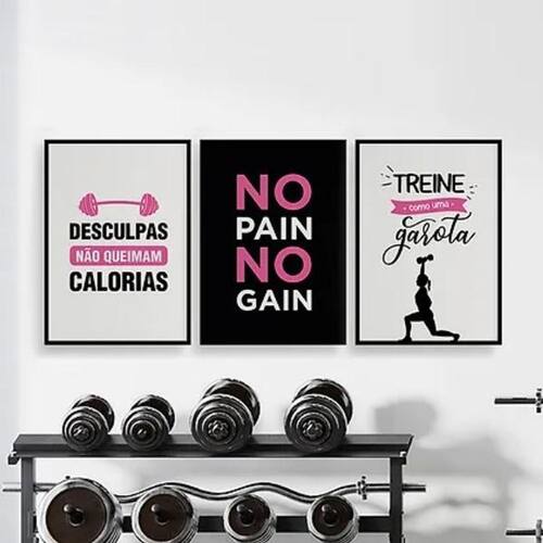 Kit 3 quadros academia feminino 45x34cm Moldura: madeira branca Informações do produto tire todas as suas dúvidas no descritivo abaixo: decoração para quarto, sala, cozinha, escritório, área gourmet e muito mais. Chega de paredes vazias. Medidas - cada peça tem 45x34cm a3 . Material do papel - papel fotográfico brilhante de altíssima resolução acabamento - todos os quadros são acompanhados de uma película de acetato para proteção da imagem. - os quadros são embalados de forma segura com plástico bolha com camada dupla de acordo com o tamanho dos quadros. - de 3 meses. Meu quadro chegou. Como posso fixá-lo Você precisa apenas de um martelo e um prego, pois os quadros já vão acompanhados de penduradores. Esta é a forma mais indicada. Caso prefira, você pode utilizar uma fita dupla face neste caso, sugerimos de alta qualidade para evitar que descole e seu quadro caia . Como posso limpar meu quadro A limpeza é feita como um móvel comum da sua casa. Apenas um pano seco ou espanador são suficientes para tal Cor: moldura branca Marca: Não Informado Ean: 7892579335910