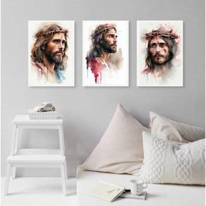 Kit 3 quadros aquarelas face de jesus 24x18cm Moldura: madeira branca Informações do produto tire todas as suas dúvidas no descritivo abaixo: decoração para quarto, sala, cozinha, escritório, área gourmet e muito mais. Chega de paredes vazias medidas - cada peça tem 24x18cm a5 . Material do papel - papel fotográfico brilhante de altíssima resolução acabamento - todos os quadros são acompanhados de uma película de acetato para proteção da imagem. - os quadros são embalados de forma segura com plástico bolha com camada dupla de acordo com o tamanho dos quadros. Garantia - garantia de 3 meses. Meu quadro chegou. Como posso fixá-lo Você precisa apenas de um martelo e um prego, pois os quadros já vão acompanhados de penduradores. Esta é a forma mais indicada. Caso prefira, você pode utilizar uma fita dupla face neste caso, sugerimos de alta qualidade para evitar que descole e seu quadro caia . Como posso limpar meu quadro A limpeza é feita como um móvel comum da sua casa. Apenas um pano seco ou espanador são suficientes para tal