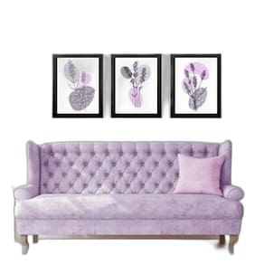 Kit 3 Quadros Arte Lavanda - Estampas 45X34Cm - Com Vidro