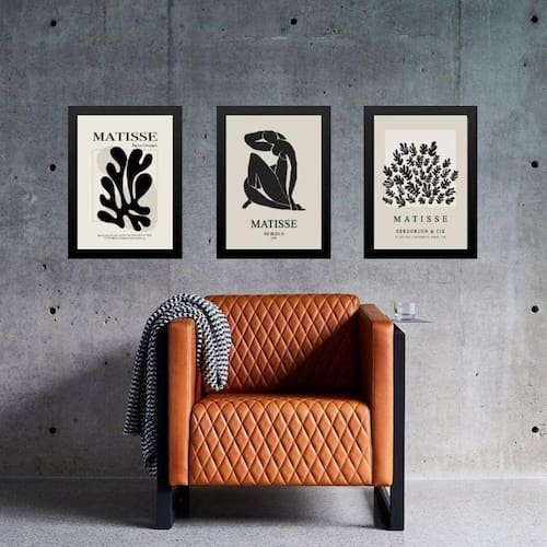 Kit 3 quadros arte matisse preto e nude 24x18cm - com vidro