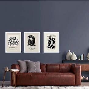 Kit 3 quadros arte matisse preto e nude 33x24cm - com vidro Moldura: madeira branca Informações do produto tire todas as suas dúvidas no descritivo abaixo: decoração para quarto, sala, cozinha, escritório, área gourmet e muito mais. Chega de paredes vazias medidas - cada peça tem 33x24cm a4 . Material do papel - papel fotográfico brilhante de altíssima resolução acabamento - todos os quadros são acompanhados de vidro para proteção da imagem. - moldura em madeira maciça na cor preta ou branca conforme produto escolhido e pendurador . - os quadros são embalados de forma segura com plástico bolha com camada dupla de acordo com o tamanho dos quadros. Garantia - garantia de 3 meses. Meu quadro chegou. Como posso fixá-lo Você precisa apenas de um martelo e um prego, pois os quadros já vão acompanhados de penduradores. Esta é a forma mais indicada. Como posso limpar meu quadro A limpeza é feita como um móvel comum da sua casa. Apenas um pano seco ou espanador são suficientes para tal