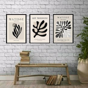Kit 3 Quadros Arte Moderna Folhas Abstratas Matisse 33X24Cm