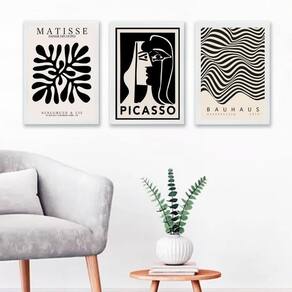 Kit 3 quadros artes matisse picasso bauhaus 45x34cm Moldura: madeira preta Informações do produto tire todas as suas dúvidas no descritivo abaixo: decoração para quarto, sala, cozinha, escritório, área gourmet e muito mais. Chega de paredes vazias. Medidas - cada peça tem 45x34cm a3 . Material do papel - papel fotográfico brilhante de altíssima resolução acabamento - todos os quadros são acompanhados de uma película de acetato para proteção da imagem. - os quadros são embalados de forma segura com plástico bolha com camada dupla de acordo com o tamanho dos quadros. Garantia - garantia de 3 meses. Meu quadro chegou. Como posso fixá-lo Você precisa apenas de um martelo e um prego, pois os quadros já vão acompanhados de penduradores. Esta é a forma mais indicada. Caso prefira, você pode utilizar uma fita dupla face neste caso, sugerimos de alta qualidade para evitar que descole e seu quadro caia . Como posso limpar meu quadro A limpeza é feita como um móvel comum da sua casa. Apenas um pano seco ou espanador são suficientes para tal