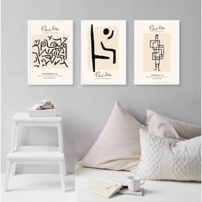 Kit 3 quadros artes minimalistas paul klee 33x24cm - com vidro Moldura: madeira preta Informações do produto tire todas as suas dúvidas no descritivo abaixo: decoração para quarto, sala, cozinha, escritório, área gourmet e muito mais. Chega de paredes vazias medidas - cada peça tem 33x24cm a4 . Material do papel - papel fotográfico brilhante de altíssima resolução acabamento - todos os quadros são acompanhados de vidro para proteção da imagem. - moldura em madeira maciça na cor preta ou branca conforme produto escolhido e pendurador . - os quadros são embalados de forma segura com plástico bolha com camada dupla de acordo com o tamanho dos quadros. Garantia - garantia de 3 meses. Meu quadro chegou. Como posso fixá-lo Você precisa apenas de um martelo e um prego, pois os quadros já vão acompanhados de penduradores. Esta é a forma mais indicada. Como posso limpar meu quadro A limpeza é feita como um móvel comum da sua casa. Apenas um pano seco ou espanador são suficientes para tal