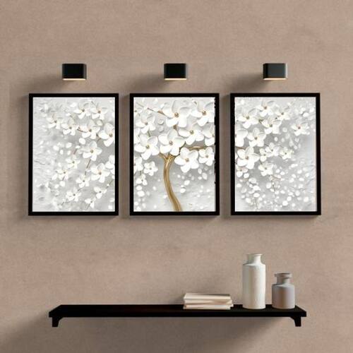 Kit 3 quadros árvore flores brancas 45x34cm - com vidro Moldura: madeira preta Informações do produto Decoração para quarto, sala, cozinha, escritório, área gourmet e muito mais. Chega de paredes vazias Medidas - cada peça tem 45x34cm a3 . Material do papel - papel fotográfico brilhante de altíssima resolução acabamento - todos os quadros são acompanhados de vidro para proteção da imagem. - moldura em madeira maciça e pendurador. - os quadros são embalados de forma segura com plástico bolha com camada dupla de acordo com o tamanho dos quadros. - de 3 meses. Meu quadro chegou. Como posso fixá-lo Você precisa apenas de um martelo e um prego, pois os quadros já vão acompanhados de penduradores. Esta é a forma mais indicada. Caso prefira, você pode utilizar uma fita dupla face neste caso, sugerimos de alta qualidade para evitar que descole e seu quadro caia . Como posso limpar meu quadro A limpeza é feita como um móvel comum da sua casa. Apenas um pano seco ou espanador são suficientes para tal