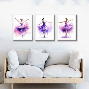 Kit 3 quadros bailarinas lilás - aquarela 24x18cm Cor: moldura preta Informações do produto tire todas as suas dúvidas no descritivo abaixo: decoração para quarto, sala, cozinha, escritório, área gourmet e muito mais. Chega de paredes vazias medidas - cada peça tem 24x18cm a5 . Material do papel - papel fotográfico brilhante de altíssima resolução acabamento - todos os quadros são acompanhados de uma película de acetato para proteção da imagem. - os quadros são embalados de forma segura com plástico bolha com camada dupla de acordo com o tamanho dos quadros. - de 3 meses. Meu quadro chegou. Como posso fixá-lo Você precisa apenas de um martelo e um prego, pois os quadros já vão acompanhados de penduradores. Esta é a forma mais indicada. Caso prefira, você pode utilizar uma fita dupla face neste caso, sugerimos de alta qualidade para evitar que descole e seu quadro caia . Como posso limpar meu quadro A limpeza é feita como um móvel comum da sua casa. Apenas um pano seco ou espanador são suficientes para tal Marca: Não Informado Ean: 7897850117704