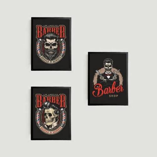 Kit 3 quadros barber shop skull 24x18cm Moldura: madeira preta Informações do produto tire todas as suas dúvidas no descritivo abaixo: decoração para quarto, sala, cozinha, escritório, área gourmet e muito mais. Chega de paredes vazias medidas - cada peça tem 24x18cm a5 . Material do papel - papel fotográfico brilhante de altíssima resolução acabamento - todos os quadros são acompanhados de uma película de acetato para proteção da imagem. - moldura em madeira maciça na cor branca e pendurador móvel que pode ser retirado facilmente caso deseje fixar com fita dupla face. - os quadros são embalados de forma segura com plástico bolha com camada dupla de acordo com o tamanho dos quadros. - de 3 meses prazo de envio pedimos 24 horas úteis no máximo para enviar seu pedido após o envio, segue os prazos normais dos correios, cerca de 7 exceto para norte e nordeste, que pode ser de até 14 . Em diversas cidades, este prazo normalmente é reduzido, mas depende do prazo dos correios. Meu quadro chegou. Como posso fixá-lo Você precisa apenas de um martelo e um prego, pois os quadros já vão acompanhados de penduradores. Esta é a forma mais indicada. Caso prefira, você pode utilizar uma fita dupla face neste caso, sugerimos de alta qualidade para evitar que descole e seu quadro caia . Como posso limpar meu quadro A limpeza é feita como um móvel comum da sua casa. Apenas um pano seco ou espanador são suficientes para tal Marca: Não Informado