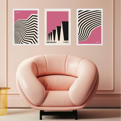 Kit 3 quadros bauhaus geométricos rosa e preto 45x34cm - com vidro Cor: moldura preta Informações do produto tire todas as suas dúvidas no descritivo abaixo: decoração para quarto, sala, cozinha, escritório, área gourmet e muito mais. Chega de paredes vazias medidas - cada peça tem 45x34cm a3 . Material do papel - papel fotográfico brilhante de altíssima resolução acabamento - todos os quadros são acompanhados de vidro para proteção da imagem. - moldura em madeira maciça na cor preta ou branca conforme produto escolhido e pendurador . - os quadros são embalados de forma segura com plástico bolha com camada dupla de acordo com o tamanho dos quadros. - de 3 meses. Meu quadro chegou. Como posso fixá-lo Você precisa apenas de um martelo e um prego, pois os quadros já vão acompanhados de penduradores. Esta é a forma mais indicada. Como posso limpar meu quadro A limpeza é feita como um móvel comum da sua casa. Apenas um pano seco ou espanador são suficientes para tal