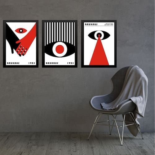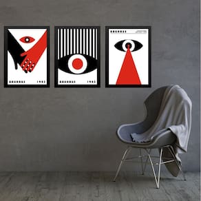Kit 3 quadros bauhaus olhos vermelho e preto 33x24cm - com vidro Cor: moldura preta Informações do produto tire todas as suas dúvidas no descritivo abaixo: decoração para quarto, sala, cozinha, escritório, área gourmet e muito mais. Chega de paredes vazias medidas - cada peça tem 33x24cm a4 . Material do papel - papel fotográfico brilhante de altíssima resolução acabamento - todos os quadros são acompanhados de vidro para proteção da imagem. - moldura em madeira maciça na cor preta ou branca conforme produto escolhido e pendurador . - os quadros são embalados de forma segura com plástico bolha com camada dupla de acordo com o tamanho dos quadros. - de 3 meses. Meu quadro chegou. Como posso fixá-lo Você precisa apenas de um martelo e um prego, pois os quadros já vão acompanhados de penduradores. Esta é a forma mais indicada. Como posso limpar meu quadro A limpeza é feita como um móvel comum da sua casa. Apenas um pano seco ou espanador são suficientes para tal