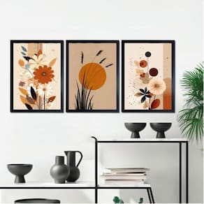 Kit 3 quadros bohos flores folhas sol terracota 33x24cm Moldura: madeira branca Informações do produto tire todas as suas dúvidas no descritivo abaixo: decoração para quarto, sala, cozinha, escritório, área gourmet e muito mais. Chega de paredes vazias medidas - cada peça tem 33x24cm a4 . Material do papel - papel fotográfico brilhante de altíssima resolução acabamento - todos os quadros são acompanhados de uma película de acetato para proteção da imagem. - os quadros são embalados de forma segura com plástico bolha com camada dupla de acordo com o tamanho dos quadros. Garantia - garantia de 3 meses. Meu quadro chegou. Como posso fixá-lo Você precisa apenas de um martelo e um prego, pois os quadros já vão acompanhados de penduradores. Esta é a forma mais indicada. Caso prefira, você pode utilizar uma fita dupla face neste caso, sugerimos de alta qualidade para evitar que descole e seu quadro caia . Como posso limpar meu quadro A limpeza é feita como um móvel comum da sua casa. Apenas um pano seco ou espanador são suficientes para tal Ean: 7894717528703