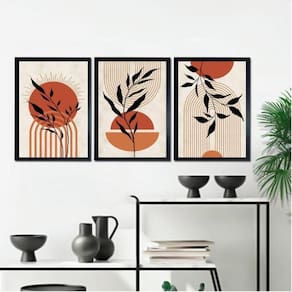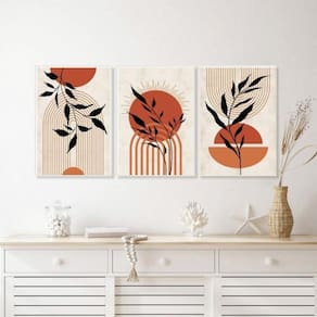 Kit 3 quadros bohos folhas e círculos terracota 24x18cm - com vidro Moldura: madeira branca Informações do produto tire todas as suas dúvidas no descritivo abaixo: decoração para quarto, sala, cozinha, escritório, área gourmet e muito mais. Chega de paredes vazias medidas - cada peça tem 24x18cm a5 . Material do papel - papel fotográfico brilhante de altíssima resolução acabamento - todos os quadros são acompanhados de vidro para proteção da imagem. - moldura em madeira maciça na cor preta e pendurador . - os quadros são embalados de forma segura com plástico bolha com camada dupla de acordo com o tamanho dos quadros. Garantia - garantia de 3 meses. Meu quadro chegou. Como posso fixá-lo Você precisa apenas de um martelo e um prego, pois os quadros já vão acompanhados de penduradores. Esta é a forma mais indicada. Como posso limpar meu quadro A limpeza é feita como um móvel comum da sua casa. Apenas um pano seco ou espanador são suficientes para tal Ean: 7897832736169