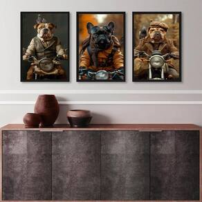 Kit 3 Quadros Cães Motociclistas 45X34Cm - Com Vidro