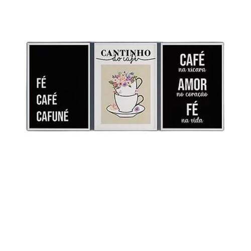 Kit 3 Quadros Fé Café Cafuné 33X24Cm - Madeira Branca