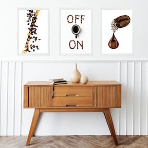 Kit 3 quadros café grãos - on off 45x34cm Cor: moldura branca Informações do produto tire todas as suas dúvidas no descritivo abaixo: decoração para quarto, sala, cozinha, escritório, área gourmet e muito mais. Chega de paredes vazias. Medidas - cada peça tem 45x34cm a3 . Material do papel - papel fotográfico brilhante de altíssima resolução acabamento - todos os quadros são acompanhados de uma película de acetato para proteção da imagem. - os quadros são embalados de forma segura com plástico bolha com camada dupla de acordo com o tamanho dos quadros. Garantia - garantia de 3 meses. Meu quadro chegou. Como posso fixá-lo Você precisa apenas de um martelo e um prego, pois os quadros já vão acompanhados de penduradores. Esta é a forma mais indicada. Caso prefira, você pode utilizar uma fita dupla face neste caso, sugerimos de alta qualidade para evitar que descole e seu quadro caia . Como posso limpar meu quadro A limpeza é feita como um móvel comum da sua casa. Apenas um pano seco ou espanador são suficientes para tal