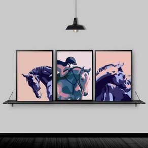 Kit 3 Quadros Cavalos Amazona 24X18Cm