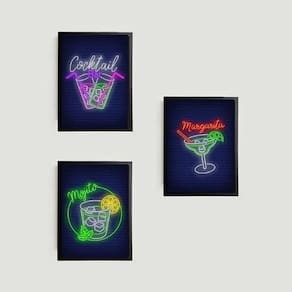 Kit 3 quadros cocktail bar 24x18cm - com vidro Moldura: madeira branca Informações do produto tire todas as suas dúvidas no descritivo abaixo: decoração para quarto, sala, cozinha, escritório, área gourmet e muito mais. Chega de paredes vazias medidas - cada peça tem 24x18cm a5 . Material do papel - papel fotográfico brilhante de altíssima resolução acabamento - todos os quadros são acompanhados de vidro para proteção da imagem. - moldura em madeira maciça na cor preta e pendurador . - os quadros são embalados de forma segura com plástico bolha com camada dupla de acordo com o tamanho dos quadros. Garantia - garantia de 3 meses. Meu quadro chegou. Como posso fixá-lo Você precisa apenas de um martelo e um prego, pois os quadros já vão acompanhados de penduradores. Esta é a forma mais indicada. Como posso limpar meu quadro A limpeza é feita como um móvel comum da sua casa. Apenas um pano seco ou espanador são suficientes para tal