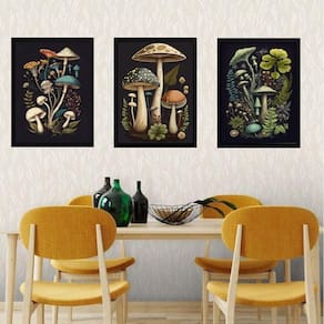 Kit 3 quadros cogumelos vintage 33x24cm