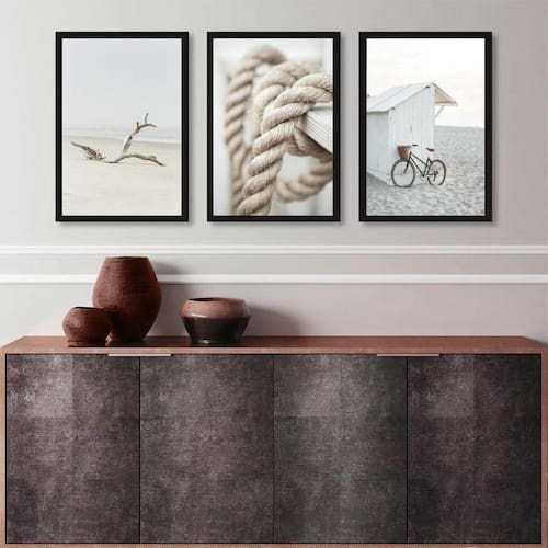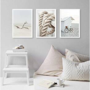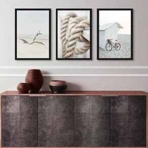 Kit 3 quadros coleção praia branco e bege 45x34cm - com vidro Moldura: madeira branca Informações do produto tire todas as suas dúvidas no descritivo abaixo: decoração para quarto, sala, cozinha, escritório, área gourmet e muito mais. Chega de paredes vazias medidas - cada peça tem 45x34cm a3 . Material do papel - papel fotográfico brilhante de altíssima resolução acabamento - todos os quadros são acompanhados de vidro para proteção da imagem. - moldura em madeira maciça na cor preta ou branca conforme produto escolhido e pendurador . - os quadros são embalados de forma segura com plástico bolha com camada dupla de acordo com o tamanho dos quadros. Garantia - garantia de 3 meses. Meu quadro chegou. Como posso fixá-lo Você precisa apenas de um martelo e um prego, pois os quadros já vão acompanhados de penduradores. Esta é a forma mais indicada. Como posso limpar meu quadro A limpeza é feita como um móvel comum da sua casa. Apenas um pano seco ou espanador são suficientes para tal