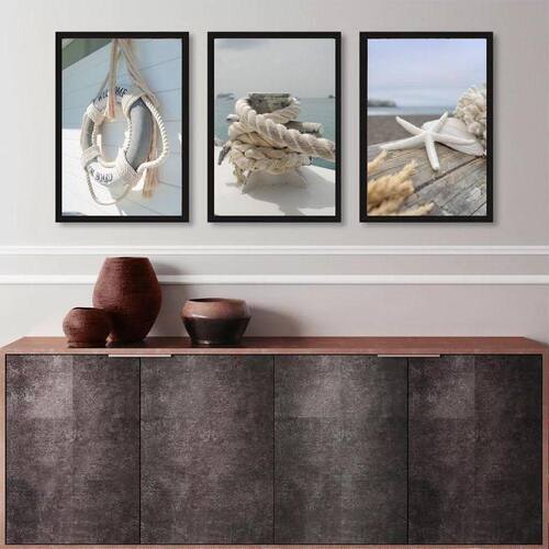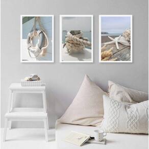Kit 3 quadros coleção praia suave 33x24cm - com vidro Moldura: madeira branca Informações do produto tire todas as suas dúvidas no descritivo abaixo: decoração para quarto, sala, cozinha, escritório, área gourmet e muito mais. Chega de paredes vazias medidas - cada peça tem 33x24cm a4 . Material do papel - papel fotográfico brilhante de altíssima resolução acabamento - todos os quadros são acompanhados de vidro para proteção da imagem. - moldura em madeira maciça na cor preta ou branca conforme produto escolhido e pendurador . - os quadros são embalados de forma segura com plástico bolha com camada dupla de acordo com o tamanho dos quadros. Garantia - garantia de 3 meses. Meu quadro chegou. Como posso fixá-lo Você precisa apenas de um martelo e um prego, pois os quadros já vão acompanhados de penduradores. Esta é a forma mais indicada. Como posso limpar meu quadro A limpeza é feita como um móvel comum da sua casa. Apenas um pano seco ou espanador são suficientes para tal