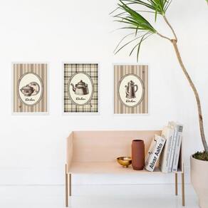 Kit 3 quadros cozinha antiguinha 45x34cm - com vidro Moldura: madeira branca Informações do produto tire todas as suas dúvidas no descritivo abaixo: decoração para quarto, sala, cozinha, escritório, área gourmet e muito mais. Chega de paredes vazias medidas - cada peça tem 45x34cm a3 . Material do papel - papel fotográfico brilhante de altíssima resolução acabamento - todos os quadros são acompanhados de vidro para proteção da imagem. - moldura em madeira maciça na cor preta ou branca conforme produto escolhido e pendurador . - os quadros são embalados de forma segura com plástico bolha com camada dupla de acordo com o tamanho dos quadros. - de 3 meses. Meu quadro chegou. Como posso fixá-lo Você precisa apenas de um martelo e um prego, pois os quadros já vão acompanhados de penduradores. Esta é a forma mais indicada. Como posso limpar meu quadro A limpeza é feita como um móvel comum da sua casa. Apenas um pano seco ou espanador são suficientes para tal Marca: Não Informado