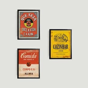 Kit 3 quadros cozinha retrô 24x18cm - com vidro Moldura: madeira branca Informações do produto tire todas as suas dúvidas no descritivo abaixo: decoração para quarto, sala, cozinha, escritório, área gourmet e muito mais. Chega de paredes vazias medidas - cada peça tem 24x18cm a5 . Material do papel - papel fotográfico brilhante de altíssima resolução acabamento - todos os quadros são acompanhados de vidro para proteção da imagem. - moldura em madeira maciça na cor preta e pendurador . - os quadros são embalados de forma segura com plástico bolha com camada dupla de acordo com o tamanho dos quadros. - de 3 meses. Meu quadro chegou. Como posso fixá-lo Você precisa apenas de um martelo e um prego, pois os quadros já vão acompanhados de penduradores. Esta é a forma mais indicada. Como posso limpar meu quadro A limpeza é feita como um móvel comum da sua casa. Apenas um pano seco ou espanador são suficientes para tal Ean: 7895142264617