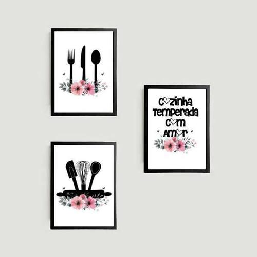 Kit 3 Quadros Cozinha Temperada Com Amor 24X18Cm