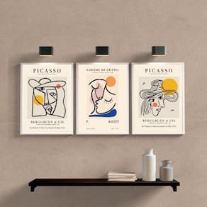 O Kit 3 Quadros Minimalistas Cubismo Picasso é perfeito para decorar diversos ambientes, como quarto, sala, cozinha, escritório, área gourmet e muito mais. Chega de paredes vazias! Cada peça possui as medidas de 33x24cm A4 , ideais para compor a decoração do seu espaço.