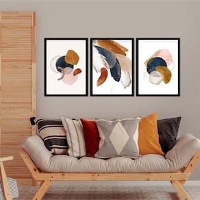 Kit 3 quadros decorativos abstratos sofisticados 33x24cm - com vidro Cor: moldura branca Informações do produto tire todas as suas dúvidas no descritivo abaixo: decoração para quarto, sala, cozinha, escritório, área gourmet e muito mais. Chega de paredes vazias medidas - cada peça tem 33x24cm a4 . Material do papel - papel fotográfico brilhante de altíssima resolução acabamento - todos os quadros são acompanhados de vidro para proteção da imagem. - moldura em madeira maciça na cor preta ou branca conforme produto escolhido e pendurador . - os quadros são embalados de forma segura com plástico bolha com camada dupla de acordo com o tamanho dos quadros. - de 3 meses. Meu quadro chegou. Como posso fixá-lo Você precisa apenas de um martelo e um prego, pois os quadros já vão acompanhados de penduradores. Esta é a forma mais indicada. Como posso limpar meu quadro A limpeza é feita como um móvel comum da sua casa. Apenas um pano seco ou espanador são suficientes para tal
