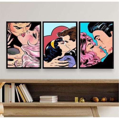 Adquira já o Kit 3 Quadros Decorativos Beijo Pop Art Casais 24X18Cm Vidro e deixe sua decoração ainda mais charmosa e personalizada. Ean: 7897265741891