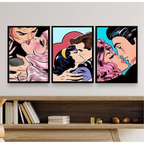 Adquira agora o Kit 3 Quadros Decorativos Beijo Pop Art Casais 33X24Cm Vidro e deixe a sua decoração ainda mais bonita e moderna. Ean: 7892573350582