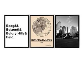 Kit 3 Quadros Decorativos Belo Horizonte-Mapa Cidade 33X24Cm