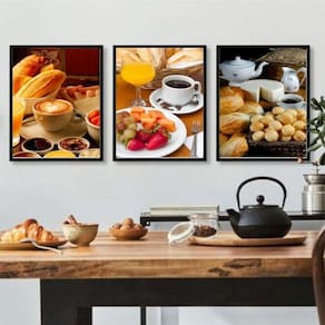 Kit 3 Quadros Decorativos Fotografias Café Da Manhã 45X34Cm