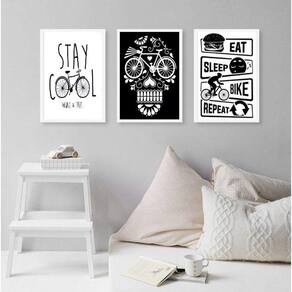 Kit 3 quadros decorativos cantinho da bike 45x34cm Moldura: madeira preta Informações do produto tire todas as suas dúvidas no descritivo abaixo: decoração para quarto, sala, cozinha, escritório, área gourmet e muito mais. Chega de paredes vazias. Medidas - cada peça tem 45x34cm a3 . Material do papel - papel fotográfico brilhante de altíssima resolução acabamento - todos os quadros são acompanhados de uma película de acetato para proteção da imagem. - os quadros são embalados de forma segura com plástico bolha com camada dupla de acordo com o tamanho dos quadros. Garantia - garantia de 3 meses. Meu quadro chegou. Como posso fixá-lo Você precisa apenas de um martelo e um prego, pois os quadros já vão acompanhados de penduradores. Esta é a forma mais indicada. Caso prefira, você pode utilizar uma fita dupla face neste caso, sugerimos de alta qualidade para evitar que descole e seu quadro caia . Como posso limpar meu quadro A limpeza é feita como um móvel comum da sua casa. Apenas um pano seco ou espanador são suficientes para tal