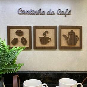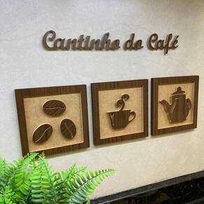 Quantidade: 3 unidades de quadros + frase Cantinho do Café.
