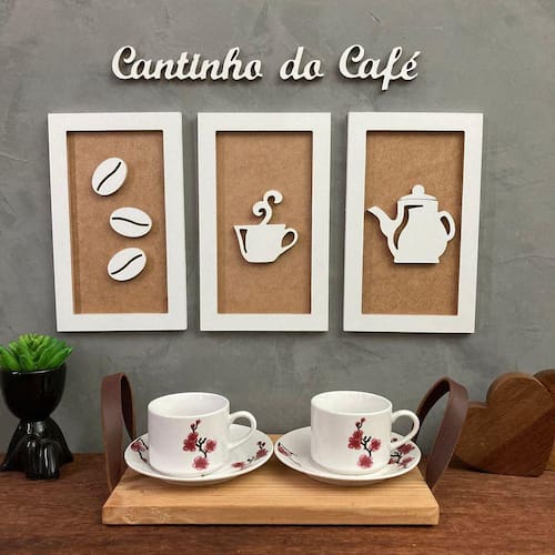 Quantidade: 3 unidades de quadros + frase Cantinho do Café.