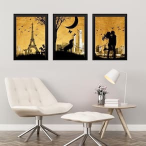 Kit 3 quadros decorativos casal cachorro paris 45x34cm - com vidro Cor: moldura branca Informações do produto tire todas as suas dúvidas no descritivo abaixo: decoração para quarto, sala, cozinha, escritório, área gourmet e muito mais. Chega de paredes vazias medidas - cada peça tem 45x34cm a3 . Material do papel - papel fotográfico brilhante de altíssima resolução acabamento - todos os quadros são acompanhados de vidro para proteção da imagem. - moldura em madeira maciça na cor preta ou branca conforme produto escolhido e pendurador . - os quadros são embalados de forma segura com plástico bolha com camada dupla de acordo com o tamanho dos quadros. - de 3 meses. Meu quadro chegou. Como posso fixá-lo Você precisa apenas de um martelo e um prego, pois os quadros já vão acompanhados de penduradores. Esta é a forma mais indicada. Como posso limpar meu quadro A limpeza é feita como um móvel comum da sua casa. Apenas um pano seco ou espanador são suficientes para tal Marca: Não Informado