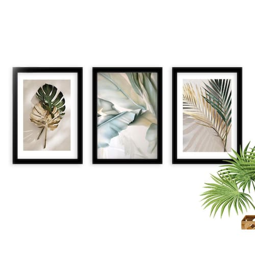 Kit 3 Quadros Decorativos Com Moldura Folhas Marmorizadas Quadros decorativos fabricados com moldura de madeira de reflorestamento com acabamento laqueado, impressão a laser em papel couché 300g, fundo em madeira. As paredes ganham cor e vida com quadros e painéis decorativos. Escolha os modelos que faltam para deixar sua decoração ainda mais bonita. Na sala, no quarto ou em outros cômodos, as peças coloridas ou em preto e branco garantem mais estilo.