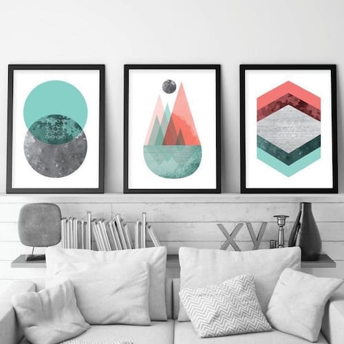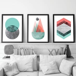 Kit 3 Quadros Decorativos Com Molduras Geometrico Colorido Quadros decorativos fabricados com moldura de madeira de reflorestamento com acabamento laqueado, impressão a laser em papel couché 300g, fundo em madeira. As paredes ganham cor e vida com quadros e painéis decorativos. Escolha os modelos que faltam para deixar sua decoração ainda mais bonita. Na sala, no quarto ou em outros cômodos, as peças coloridas ou em preto e branco garantem mais estilo.
