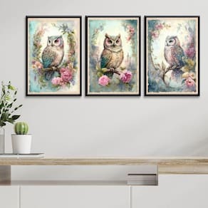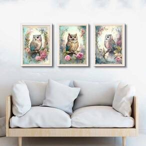 Kit 3 quadros decorativos coruja vintage 24x18cm Cor: moldura branca Informações do produto tire todas as suas dúvidas no descritivo abaixo: decoração para quarto, sala, cozinha, escritório, área gourmet e muito mais. Chega de paredes vazias medidas - cada peça tem 24x18cm a5 . Material do papel - papel fotográfico brilhante de altíssima resolução acabamento - todos os quadros são acompanhados de uma película de acetato para proteção da imagem. - os quadros são embalados de forma segura com plástico bolha com camada dupla de acordo com o tamanho dos quadros. Garantia - garantia de 3 meses. Meu quadro chegou. Como posso fixá-lo Você precisa apenas de um martelo e um prego, pois os quadros já vão acompanhados de penduradores. Esta é a forma mais indicada. Caso prefira, você pode utilizar uma fita dupla face neste caso, sugerimos de alta qualidade para evitar que descole e seu quadro caia . Como posso limpar meu quadro A limpeza é feita como um móvel comum da sua casa. Apenas um pano seco ou espanador são suficientes para tal