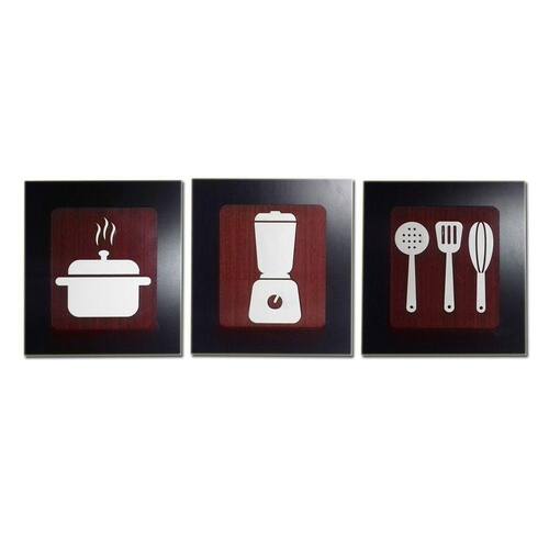 Kit 3 Quadros Decorativos para cozinha e restaurante fabricado em MDF com relevo 33 x 30 cm