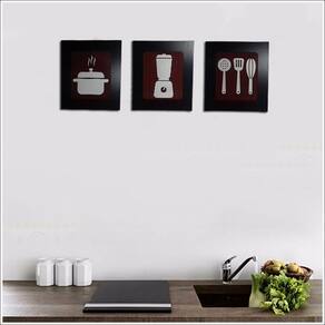 Kit 3 Quadros Decorativos para cozinha 33 cm x 30 cm fabricado em MDF com relevo.