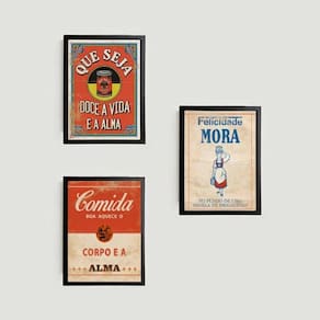 Kit 3 Quadros Decorativos Cozinha Vintage - Tamanho: A4 (20 x 30) / Acabamento: Película de acetato / Moldura: Madeira preta