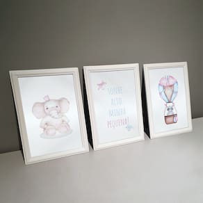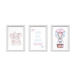 Kit 3 Quadros Decorativos Elefante Balão Rosa 24x34cm