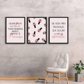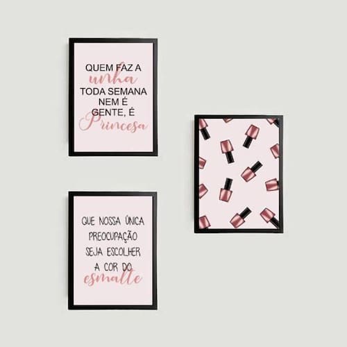 Kit 3 quadros decorativos esmalteria 45x34cm - com vidro Moldura: madeira preta Informações do produto tire todas as suas dúvidas no descritivo abaixo: decoração para quarto, sala, cozinha, escritório, área gourmet e muito mais. Chega de paredes vazias medidas - cada peça tem 45x34cm a3 . Material do papel - papel fotográfico brilhante de altíssima resolução acabamento - todos os quadros são acompanhados de vidro para proteção da imagem. - moldura em madeira maciça na cor preta e pendurador . - os quadros são embalados de forma segura com plástico bolha com camada dupla de acordo com o tamanho dos quadros. Garantia - garantia de 3 meses. Meu quadro chegou. Como posso fixá-lo Você precisa apenas de um martelo e um prego, pois os quadros já vão acompanhados de penduradores. Esta é a forma mais indicada. Como posso limpar meu quadro A limpeza é feita como um móvel comum da sua casa. Apenas um pano seco ou espanador são suficientes para tal
