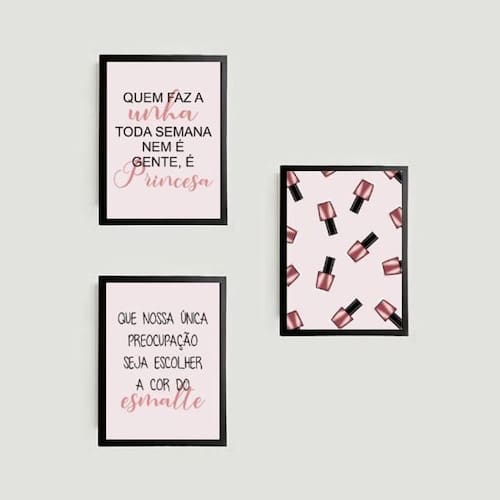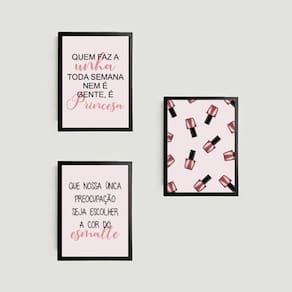 Kit 3 quadros decorativos esmalteria 45x34cm - com vidro Moldura: madeira preta Informações do produto tire todas as suas dúvidas no descritivo abaixo: decoração para quarto, sala, cozinha, escritório, área gourmet e muito mais. Chega de paredes vazias medidas - cada peça tem 45x34cm a3 . Material do papel - papel fotográfico brilhante de altíssima resolução acabamento - todos os quadros são acompanhados de vidro para proteção da imagem. - moldura em madeira maciça na cor preta e pendurador . - os quadros são embalados de forma segura com plástico bolha com camada dupla de acordo com o tamanho dos quadros. Garantia - garantia de 3 meses. Meu quadro chegou. Como posso fixá-lo Você precisa apenas de um martelo e um prego, pois os quadros já vão acompanhados de penduradores. Esta é a forma mais indicada. Como posso limpar meu quadro A limpeza é feita como um móvel comum da sua casa. Apenas um pano seco ou espanador são suficientes para tal Ean: 7895142181587
