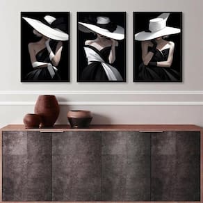 Kit 3 Quadros Decorativos Fashion Damas Em Preto E Branco