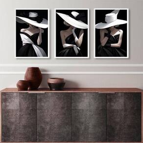 Kit 3 quadros decorativos fashion damas em preto e branco 45x34cm Moldura: madeira branca Informações do produto tire todas as suas dúvidas no descritivo abaixo: decoração para quarto, sala, cozinha, escritório, área gourmet e muito mais. Chega de paredes vazias. Medidas - cada peça tem 45x34cm a3 . Material do papel - papel fotográfico brilhante de altíssima resolução acabamento - todos os quadros são acompanhados de uma película de acetato para proteção da imagem. - os quadros são embalados de forma segura com plástico bolha com camada dupla de acordo com o tamanho dos quadros. Garantia - garantia de 3 meses. Meu quadro chegou. Como posso fixá-lo Você precisa apenas de um martelo e um prego, pois os quadros já vão acompanhados de penduradores. Esta é a forma mais indicada. Caso prefira, você pode utilizar uma fita dupla face neste caso, sugerimos de alta qualidade para evitar que descole e seu quadro caia . Como posso limpar meu quadro A limpeza é feita como um móvel comum da sua casa. Apenas um pano seco ou espanador são suficientes para tal Ean: 7891552001477