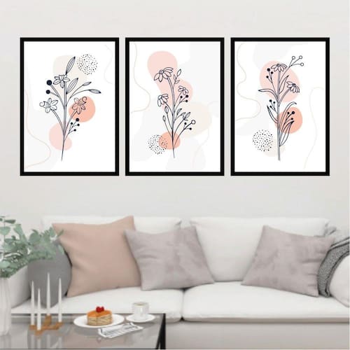 Kit 3 Quadros Decorativos Flores Abstrato - Tamanho: A4 (20 x 30) / Acabamento: Película de acetato / Moldura: Madeira preta