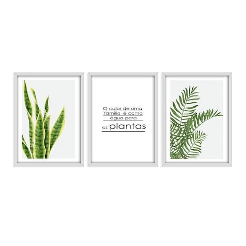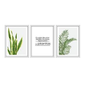 Kit 3 Quadros Decorativos Folhagem Frases Motivacionais Dimensão do produto Montado 43x105 Características: Quadro Com Moldura laqueada lisa 2cm na cor branca Esse KIT contém 3 unidades cada uma delas com 33x43 cm cada Acompanha pendurador - sem necessidade de cola.